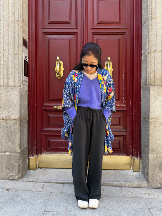 Our upcycled kimono pants and haori sets combine traditional Japanese textiles with...