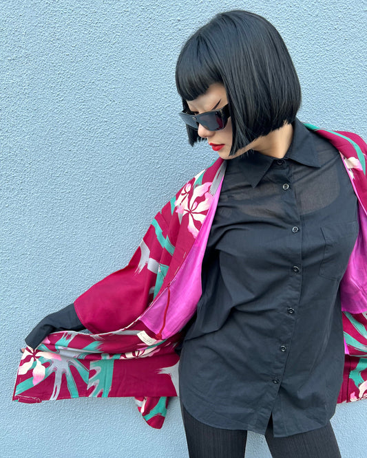 Our upcycled kimono shirts are created from vintage Japanese textiles, transforming traditional...